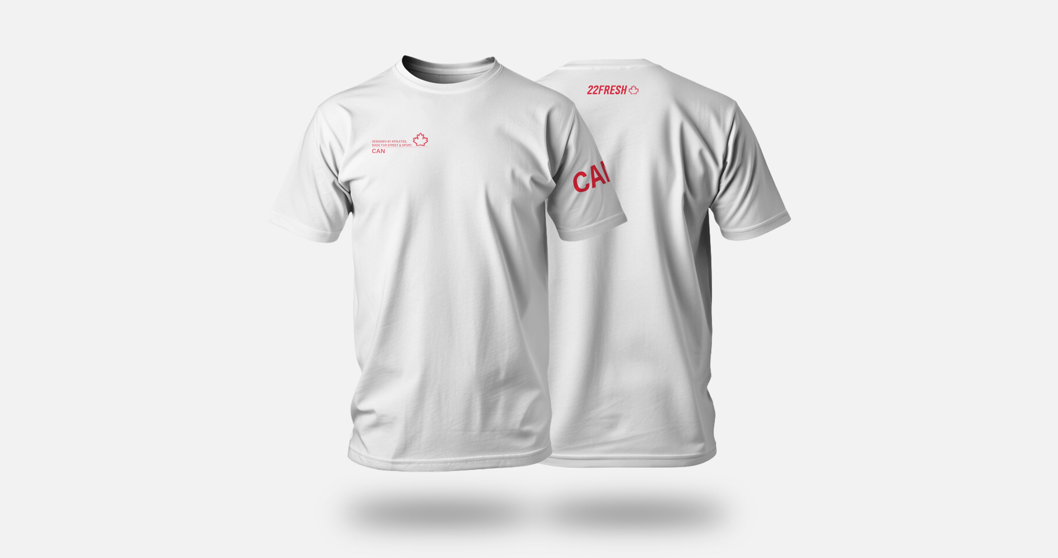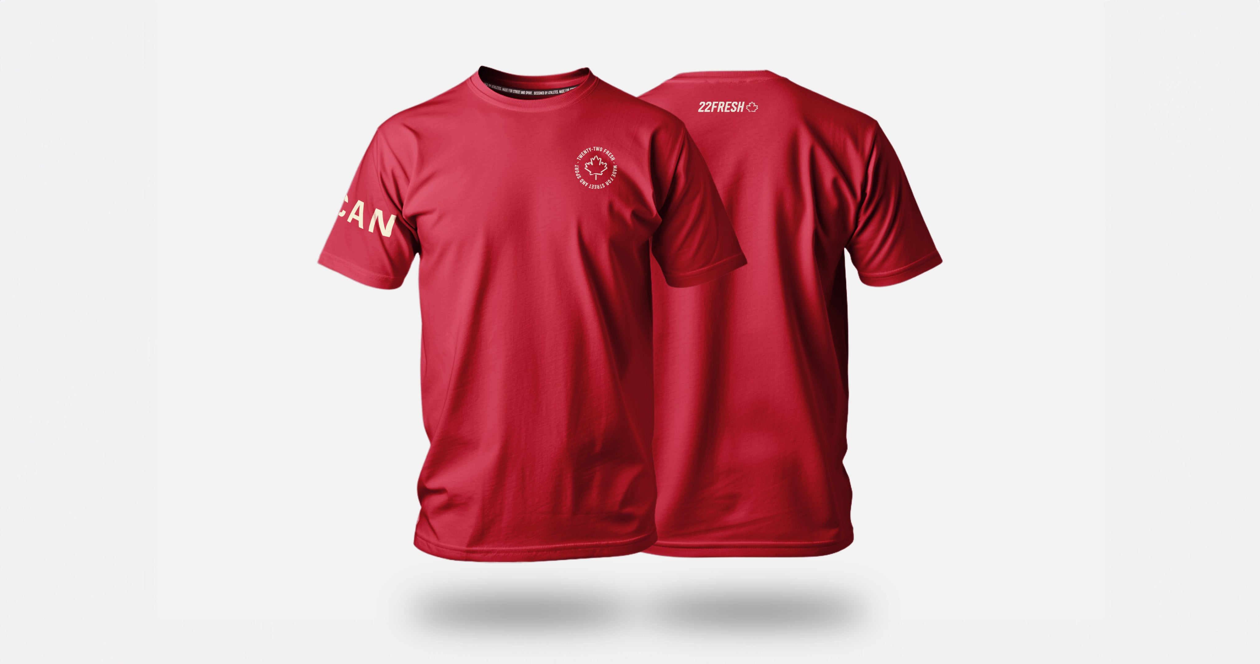 Made from our soft and breathable cotton-based fabric, the tee features a crisp white base with bold red print and a stencil-style 22Fresh maple leaf graphic—a subtle nod to Canadian strength and unity. The athletic fit delivers easy comfort, while the "CAN" sleeve detail and 22Fresh logo on the back keep you looking sharp from every angle.