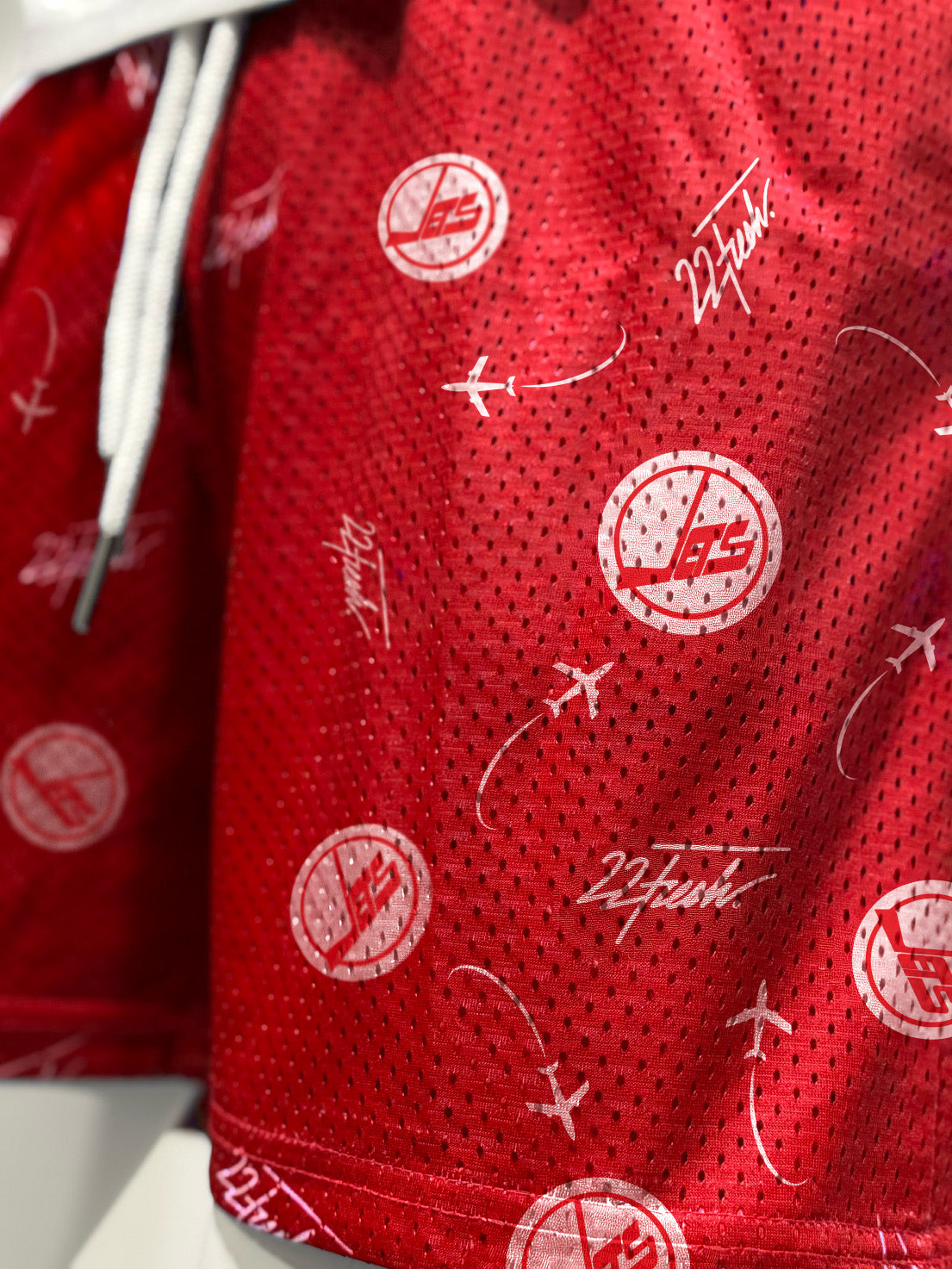 Hit cruise altitude in the Jets Hockey All-Over Mesh Shorts — engineered for athletes who move fast, think sharp, and rep their squad everywhere they go. Packed with official Jets Hockey marks, flight paths, and that unmistakable 22Fresh edge, these shorts bring pure tournament-energy comfort with a look that flies on its own.