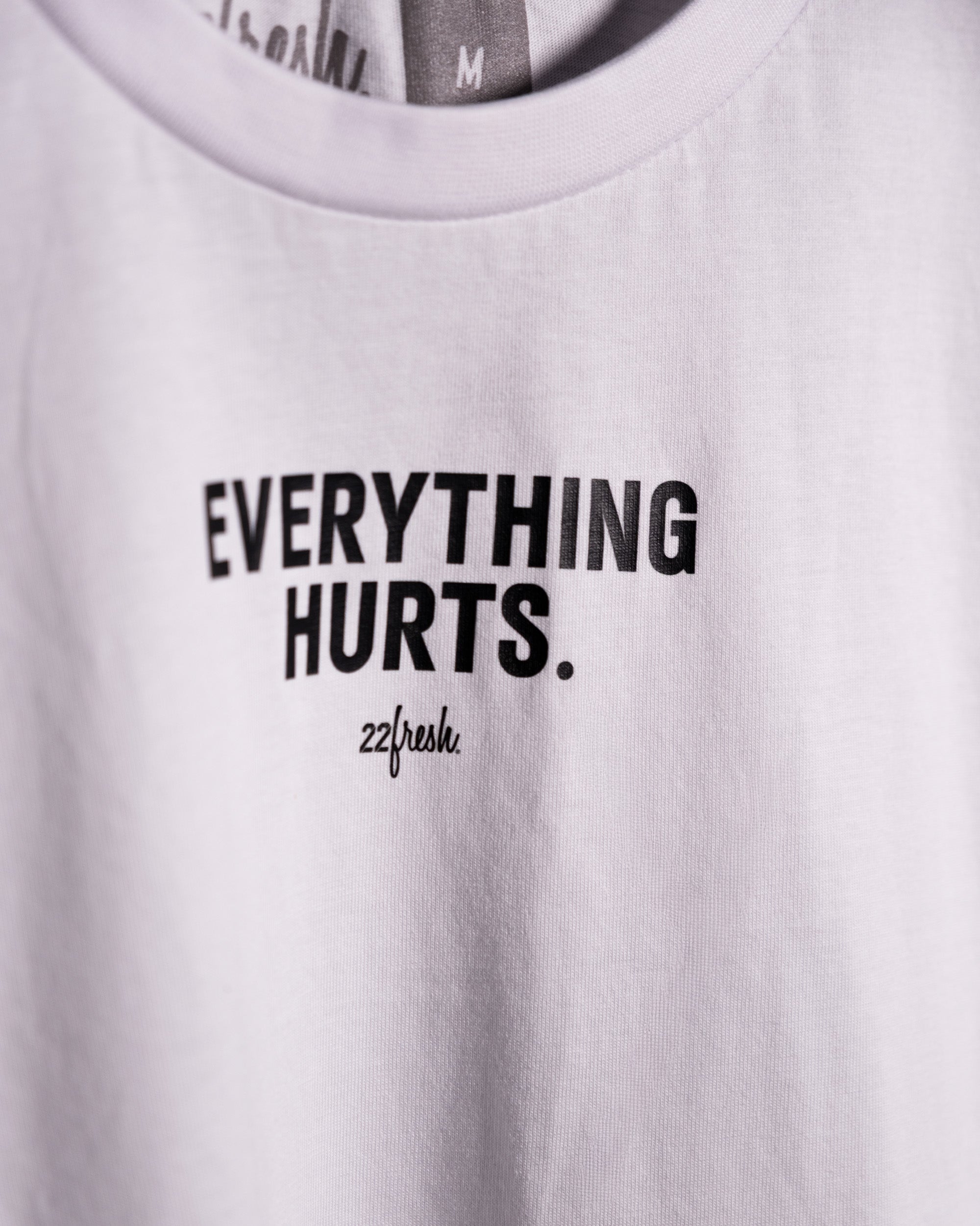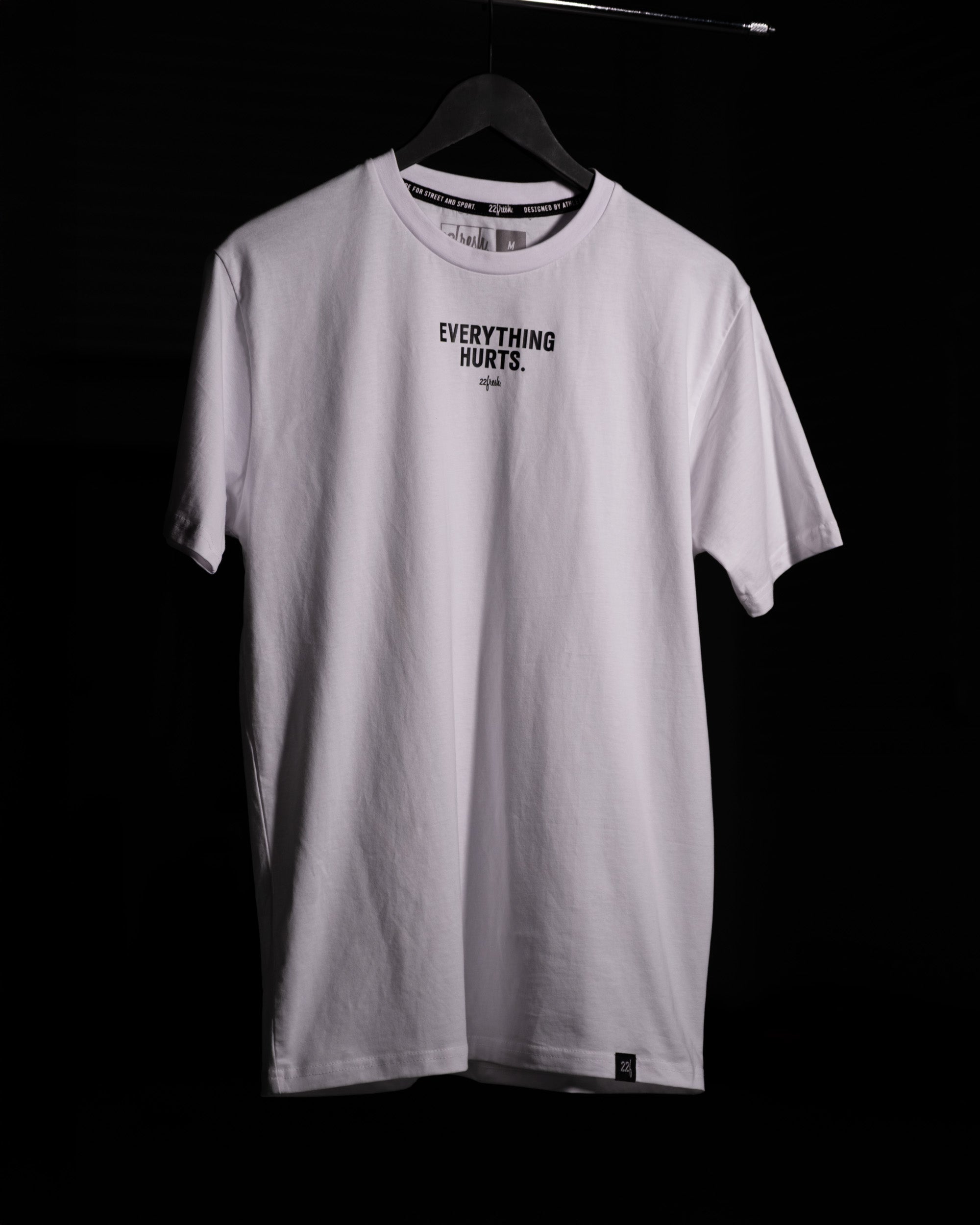 The “Everything Hurts.” Tee is a badge of honour for athletes who know that soreness is just part of the story. Clean, minimal, and tough enough to keep up from warm-up to wind-down.
